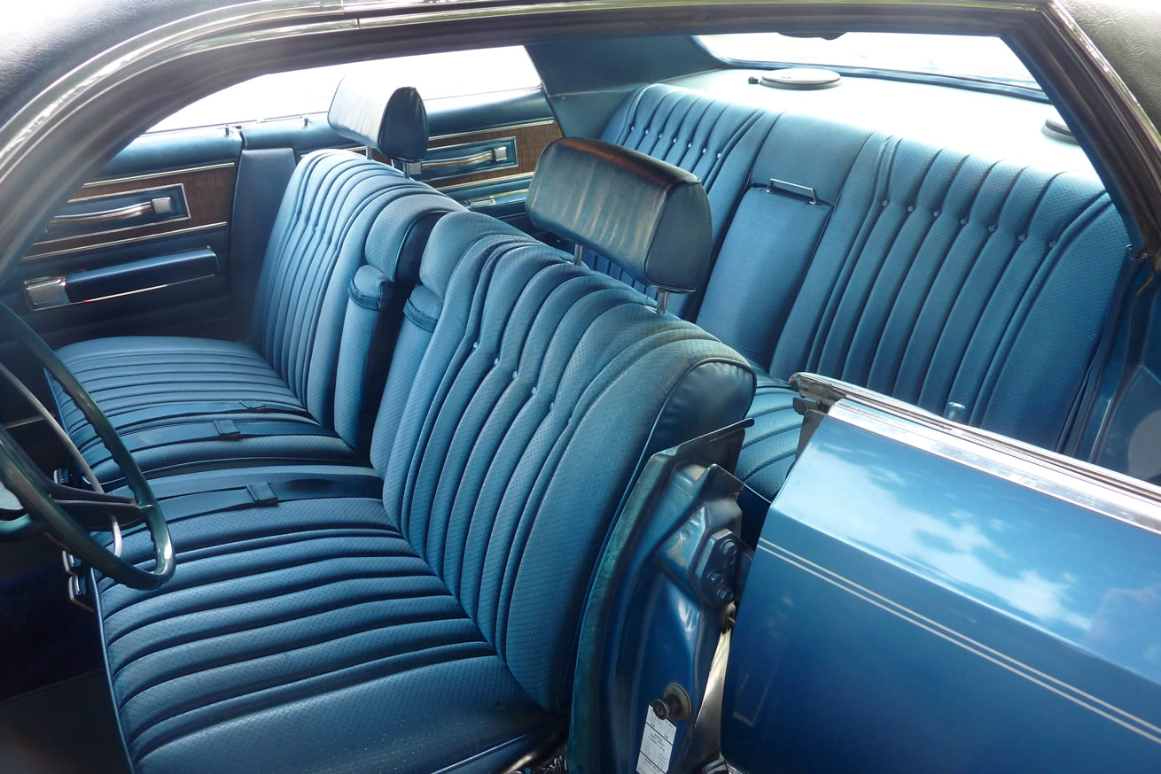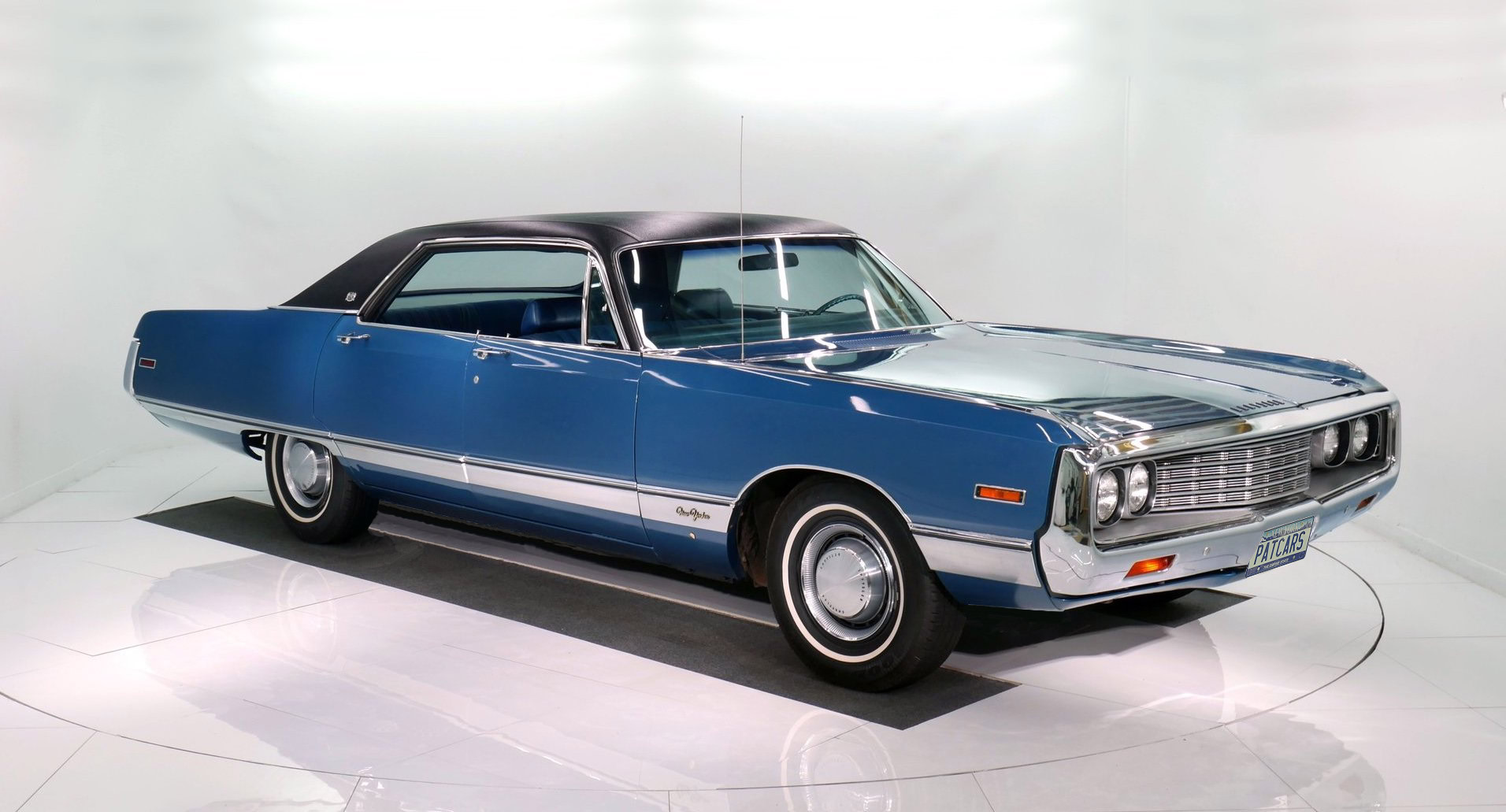 Der Innenraum des New Yorkers von 1970 war ebenso luxuriös wie sein Äußeres. Die blaue Brokat-Innenausstattung schuf eine warme, fast schon aristokratische Atmosphäre. Power Steering, Power Brakes, Air Condition, Power Windows und viele weitere Features hoben den Fahrkomfort auf ein neues Niveau. Die zu der Zeit in den USA fast standardmässige Lenkradautomatik machte das Fahren dieses gewaltigen Fahrzeugs ausgesprochen angenehm und ermöglichte die vordere durchgehende Sitzbank. Der riesige Kofferraum bot nicht nur ausreichend Platz für Gepäck, sondern unterstrich den „Full-Size“-Charakter des New Yorkers. Komfort und praktische Nutzung standen im Vordergrund – ein wahres Meisterwerk der amerikanischen Automobiltechnik.
